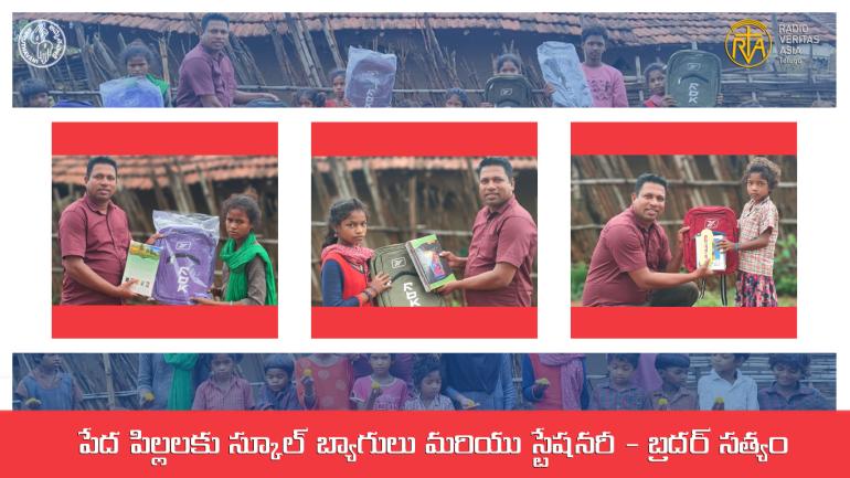 పేద పిల్లలకు స్కూల్ బ్యాగులు మరియు స్టేషనరీ - బ్రదర్ సత్యం