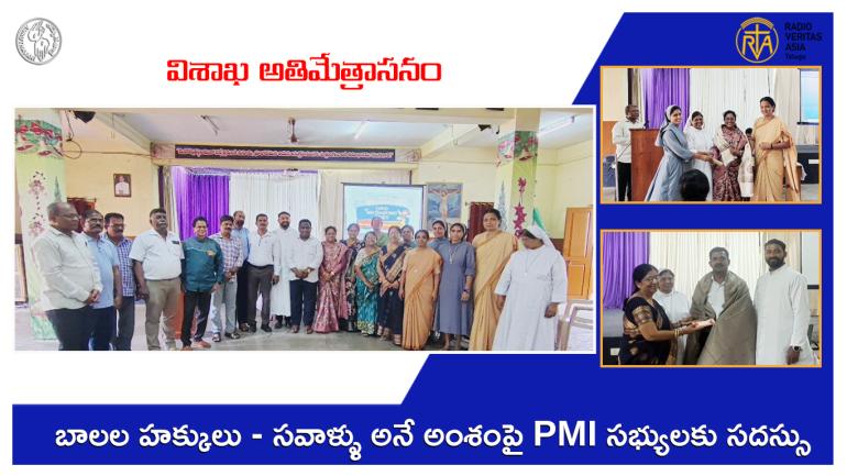 విశాఖ అతిమేత్రాసనం, మహారాణిపేట లోని పాస్ట్రల్ సెంటర్లో తేది 13-05-2025న బాలల హక్కులు - అవసరతలు - నడిపింపు - సవాళ్ళు అనే అంశం ప్రాధాన్యతగా విశాఖ అతిమేత్రాసన భారత చెరసాల పరిచర్య(PMI) సభ్యులకు ఒక రోజు సదస్సు నిర్వహించబడింది. ప్రిజన్ మినిస్ట్రి విశాఖ అతిమేత్రాసన కో ఆర్డినేటర్ ఫాదర్ ప్రదీప్ MSFS గారి సారధ్యంలో ఈ కార్యక్రమం జరిగింది.