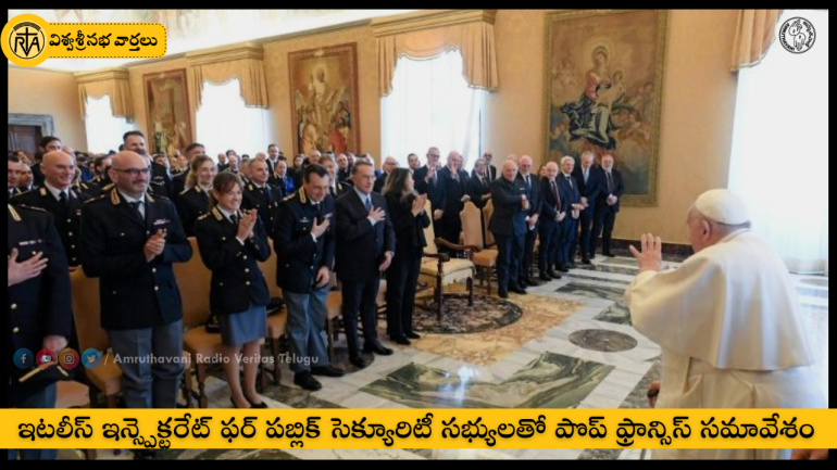 జనవరి 23 గురువారం వాటికన్ సిటీలో ఇటలీస్ ఇన్స్పెక్టరేట్ ఫర్ పబ్లిక్ సేఫ్టీ (Italy’s Inspectorate for Public Safety)సభ్యుల వార్షిక సమావేశంలో పొప్ ఫ్రాన్సిస్ పాల్గొన్నారు.