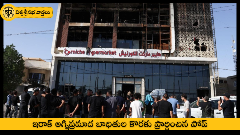 ఇరాక్లోని షాపింగ్ సెంటర్ అగ్నిప్రమాద బాధితులకు పోప్ లియో XIV తన "ఆధ్యాత్మిక సంఘీభావం" ముఖ్యంగా ప్రమాదంలో గాయపడిన వారికి,వారి కుటుంబాలకు తన సాన్నిహిత్యాన్ని వ్యక్తం చేశారు.