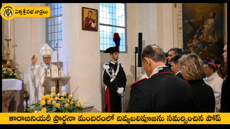 జులై 15 మంగళవారం రోమ్ సమీపంలోని కొండపై ఉన్న పట్టణంలోని Carabinieri ప్రధాన కార్యాలయ ప్రార్థనా మందిరంలో పొప్ లియో దివ్యబలిపూజను సమర్పించారు.