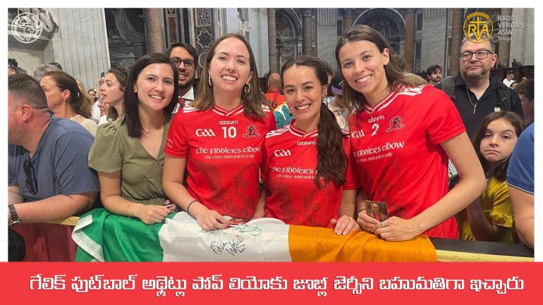 జూన్ 14న సెయింట్ పీటర్స్ బసిలికాలో జరిగిన పాపల్ సాధారణ ప్రేక్షకుల సమావేశం సందర్భంగా రోమ్ హైబర్నియా గేలిక్ అథ్లెటిక్ అసోసియేషన్ (GAA)కి చెందిన ముగ్గురు సభ్యులు నియామ్ ర్యాన్, కేథరీన్ హల్లినన్ మరియు కేటీ మొల్లాయ్ లు పోప్ లియో XIV గారికి ప్రత్యేకంగా రూపొందించిన జూబ్లీ జెర్సీని బహూకరించారు.