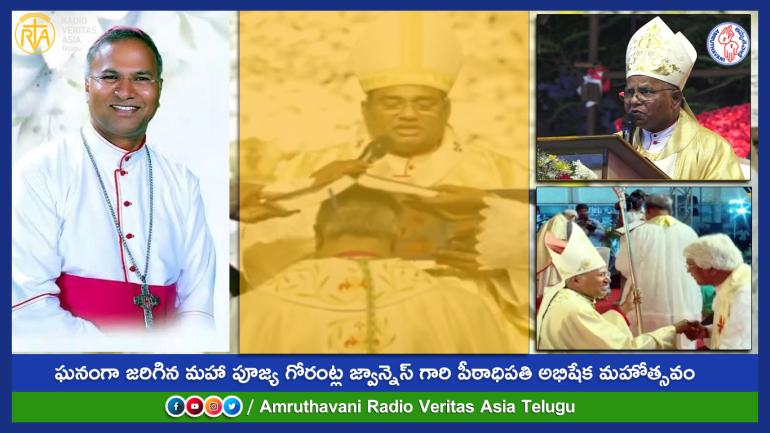 దివ్యబలిపూజ అనంతరం నూతన పీఠాధిపతి మహా పూజ్య గోరంట్ల జ్వాన్నెస్  గారు తన అభిషేక మహోత్సవానికి విచ్చేసిన వారందరికి తన హృదయపూర్వక కృతఙ్ఞతలు తెలిపారు.