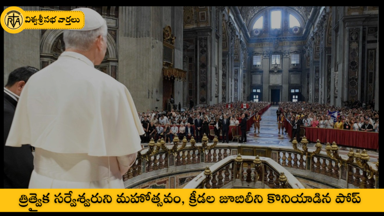 జూన్ 15 ఆదివారం సెయింట్ పీటర్స్ బసిలికాలో పవిత్ర త్రిత్వైక సర్వేశ్వరుని మహోత్సవం మరియు క్రీడా ఉత్సవం సందర్బంగా పోప్ లియో దివ్యబలిపూజను సమర్పించారు
