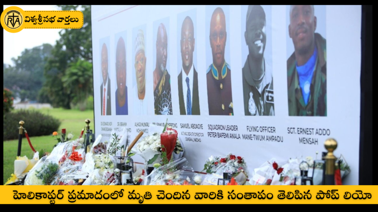 పశ్చిమ ఆఫ్రికా దేశమైన ఘనాలో ఆగస్టు 6 బుధవారం జరిగిన సైనిక హెలికాప్టర్ ప్రమాదంలో మరణించిన మంత్రులు, ప్రభుత్వ అధికారులు మరియు సిబ్బందికై పోప్ లియో విచారాన్ని వ్యక్తం చేశారు.