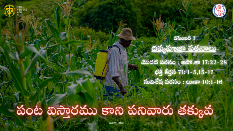 సత్యోపదేశము దివ్యపూజా పఠనాలు | Daily Mass Reading | 3 December 2025 By Telugu Service, 03 December, 2025 మొదటి పఠనం : అపో.కా 17:22-28 భక్తి కీర్తన 71: 1-5,15-17 సువిశేష పఠనం : లూకా 10:1-16 Tags rva Your name Comment Related పాపు గారి సందేశం నిత్యజీవానికి సిద్దపడమని పిలుపునిచ్చిన పోప్ లియో సత్యోపదేశము దివ్యపూజా పఠనాలు | Daily Mass Reading | 10 December 2025 పాపు గారి సందేశం వాటికన్లో ఘనంగా జరిగిన గాయక బృందాల జూబిలీ More సత్యోపదేశము సత్యోపదేశము దివ్యపూజా పఠనాలు | Daily Mass Reading | 11 December 2025 సత్యోపదేశము దివ్యపూజా పఠనాలు | Daily Mass Reading | 10 December 2025 సత్యోపదేశము దివ్యపూజా పఠనాలు | Daily Mass Reading | 9 December 2025