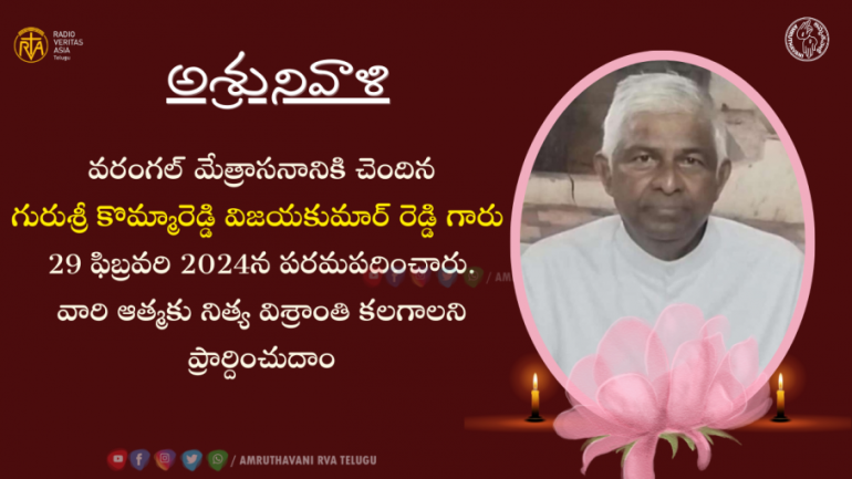వరంగల్ మేత్రాసనానికి చెందిన గురుశ్రీ కొమ్మారెడ్డి విజయకుమార్ రెడ్డి గారు గుండెపోటుతో 29 ఫిబ్రవరి 2024న మధ్యాహ్నం 2 గంటలకు పరమపదించారు.