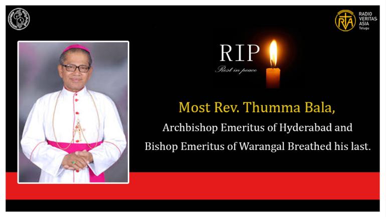 Most Rev. Thumma Bala, Archbishop Emeritus of Hyderabad and Bishop Emeritus of Warangal a very hardworking and dedicated Bishop aged 80 has reached his eternal abode at 10:25 am today, May 30, 2024.
