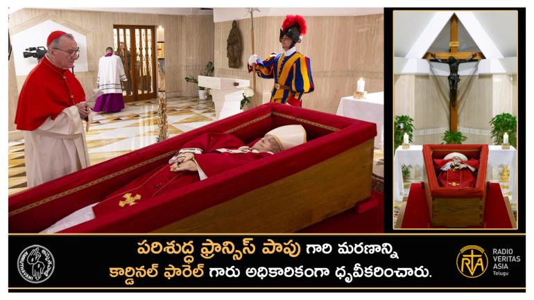 పరిశుద్ధ ఫ్రాన్సిస్ పాపు గారి మరణాన్ని కార్డినల్ ఫారెల్ గారు అధికారికంగా ధృవీకరించారు.