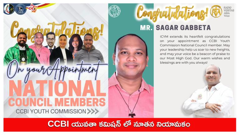 వరంగల్ మేత్రాసనం, ఫాతిమా మాత కథెడ్రల్ కు చెందిన శ్రీ సాగర్ గబ్బెట గారు, CCBI నేషనల్ యువత విభాగంలో సభ్యుడిగా నియమితులయ్యారు.