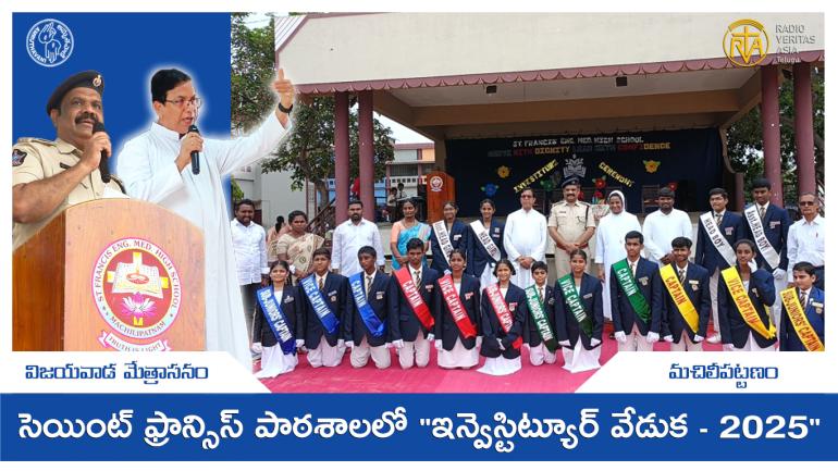 విజయవాడ మేత్రాసనం, మచిలీపట్టణంలోని సెయింట్ ఫ్రాన్సిస్ ఇంగ్లీష్ మీడియం హై స్కూల్ నందు "ఇన్వెస్టిట్యూర్ వేడుక - 2025" జులై 2, 2025న ఘనంగా జరిగింది. ఈ కార్యక్రమంలో స్కూల్ ప్రిన్సిపాల్ సిభి అంతోనీ గారు మరియు స్కూల్ కరెస్పాండంట్ ఫాదర్ ఎన్. డేవిడ్ రాజు గారు పాల్గొన్నారు. ఈ కార్యక్రమంలో ముఖ్యఅతిథిగా విజయవాడ డిప్యూటీ అసిస్టెంట్ కమిషనర్ ఆఫ్ పోలీస్, శ్రీ ఎం. రాజారావు గారు ముఖ్య అతిథిగా హాజరయ్యారు.