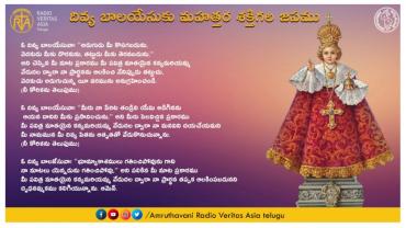 సత్యోపదేశము దివ్య బాలయేసుకు మహత్తర శక్తిగల జపము ఓ దివ్య బాలయేసువా! “అడుగుడు మీ కొసగబడును, వెదకుడు మీకు దొరకును, తట్టుడు మీకు తెరవబడును”