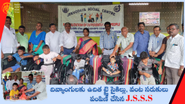 దివ్యాంగులకు ఉచిత ట్రై సైకిల్లు, వంట సరుకులు పంపిణీ చేసిన JSSS